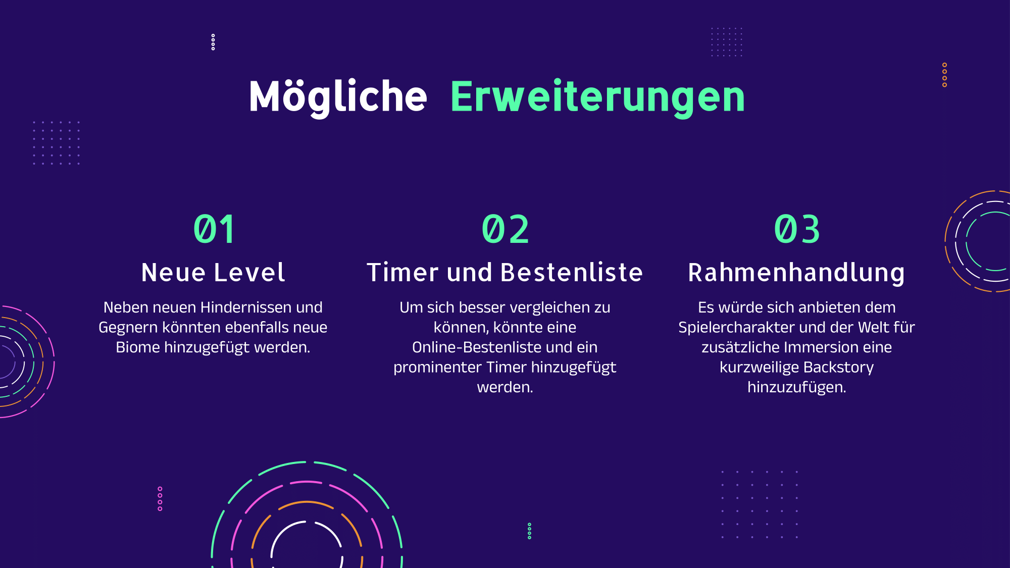 To support the gameplay, I extended the original asset pack with custom elements such as a throwable boomerang and checkpoint flags. The game currently features one long level in which the player gradually learns new mechanics. The goal is to reach a hidden diamond treasure deep inside a sunken temple.
