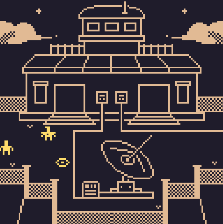 Der Dunkle Wald is a short narrative game made in Bitsy, set in an alternate 1980s world shaped by space race tensions. You play as a civilian scientist temporarily stationed on a remote military base. As strange signals begin to appear, you're faced with a choice that may carry unforeseen consequences.